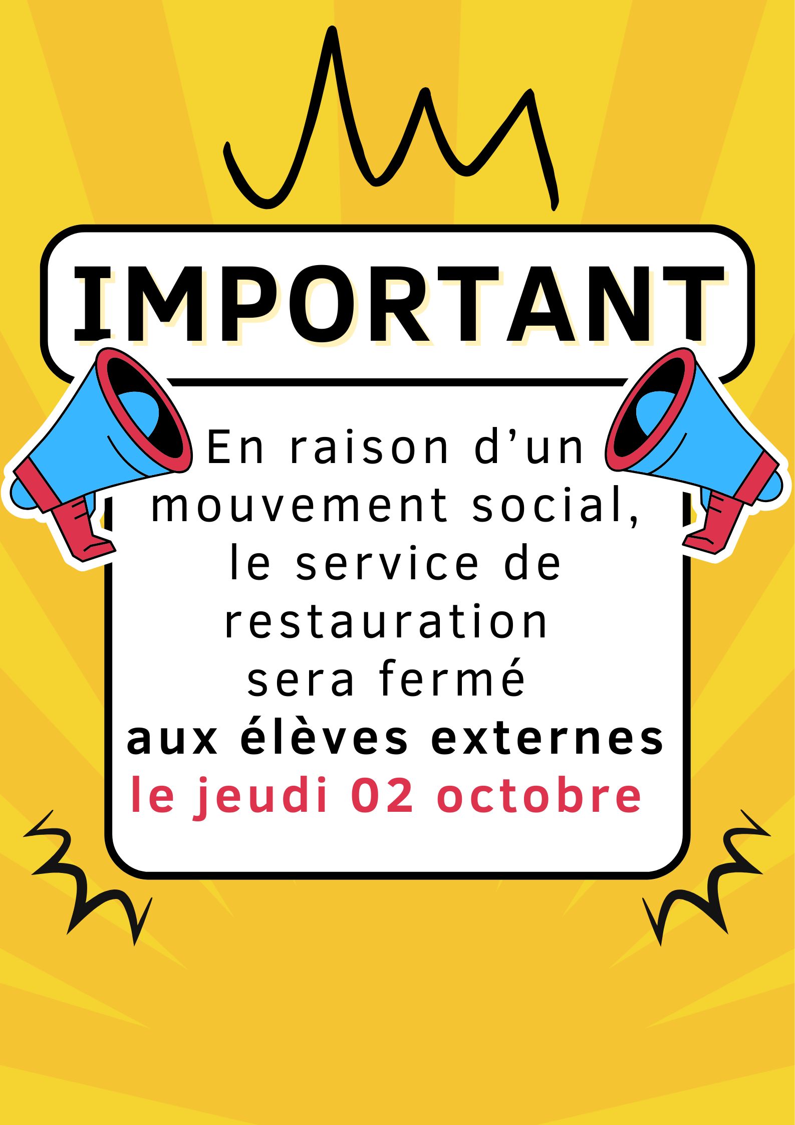 Fermeture de la demi-pension aux élèves externes Terminé