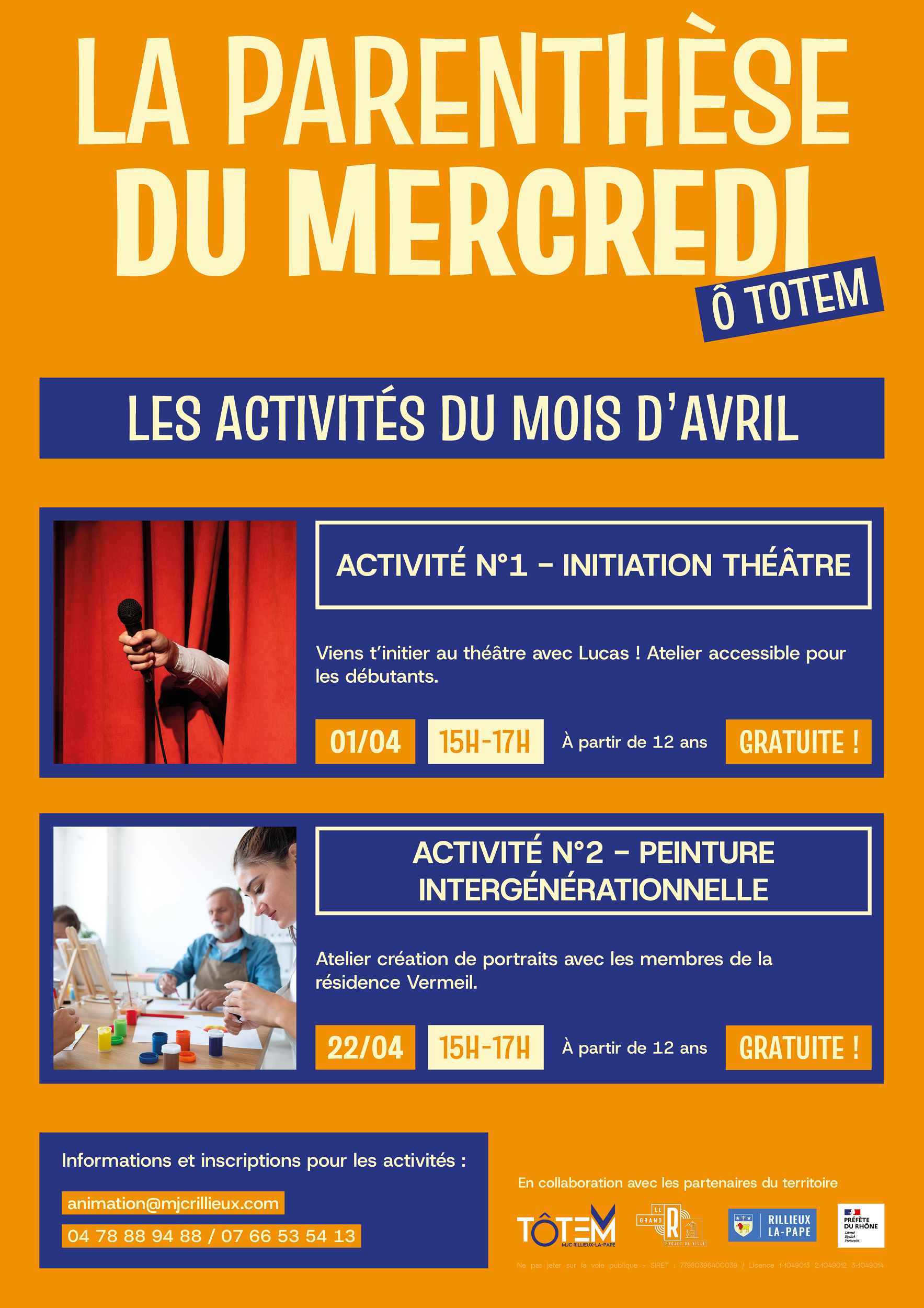 Ateliers accessibles sur inscription auprès de Madison : animation@mjcrillieux.com / 04 78 88 94 88 ou 07 66 53 54 13 (nombre de places limité)