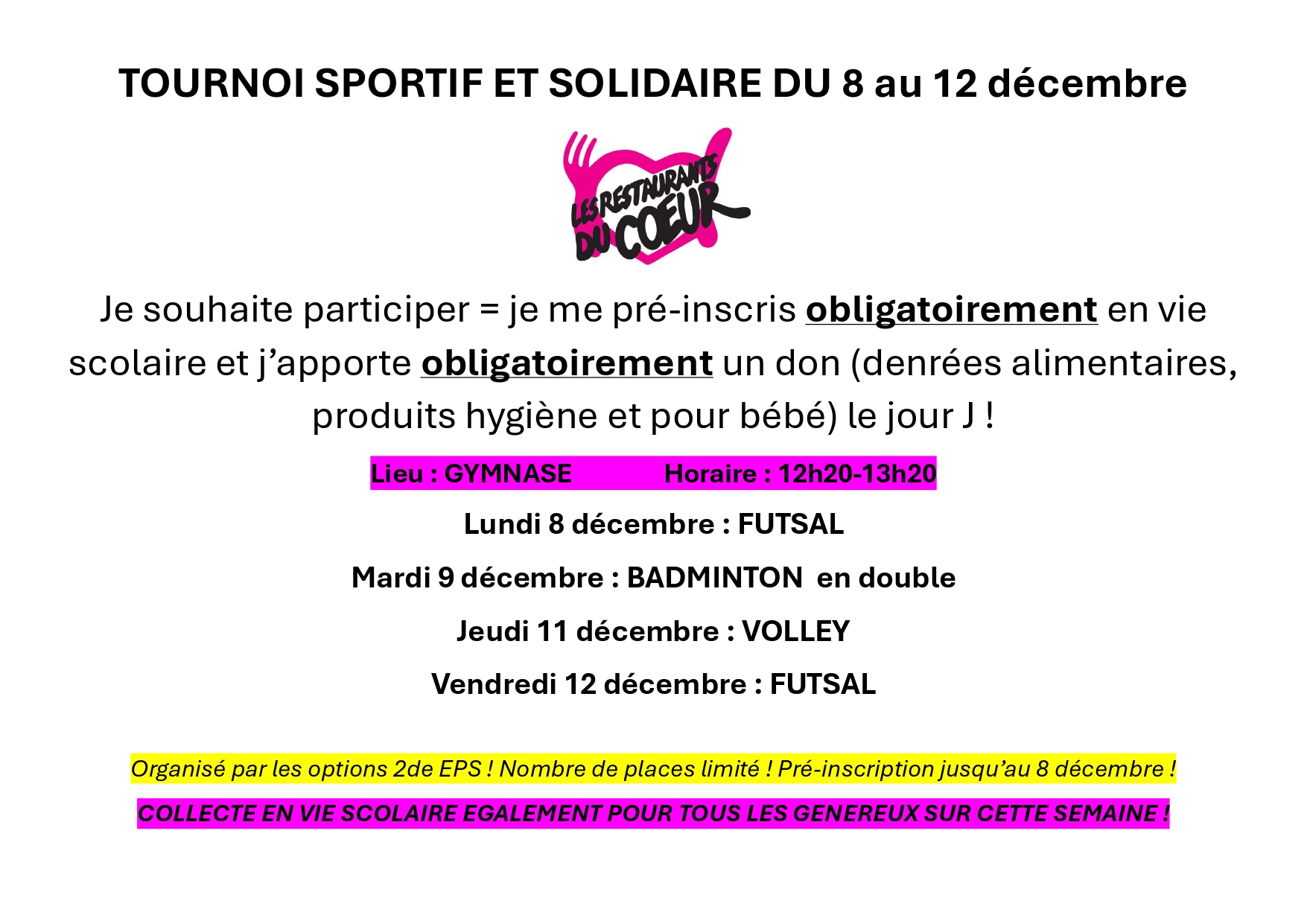 Tournoi sportif et solidaire Terminé