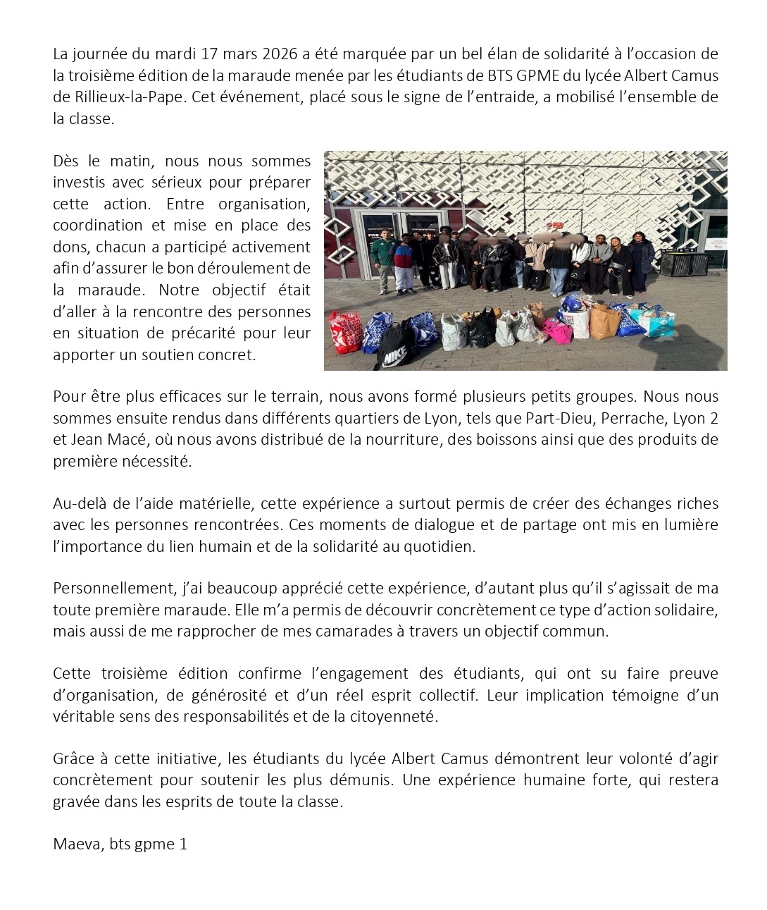 2026/03 - Maraude solidaire BTS GPME réalisé le 17 mars 2026