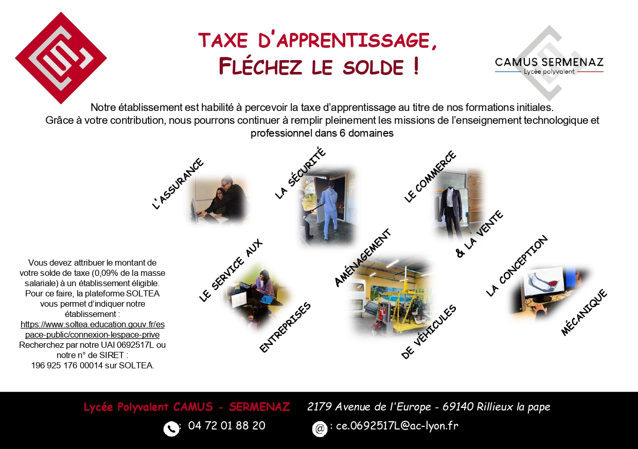 Le LPO Camus-Sermenaz est habilité à percevoir la taxe d'apprentissage !!!